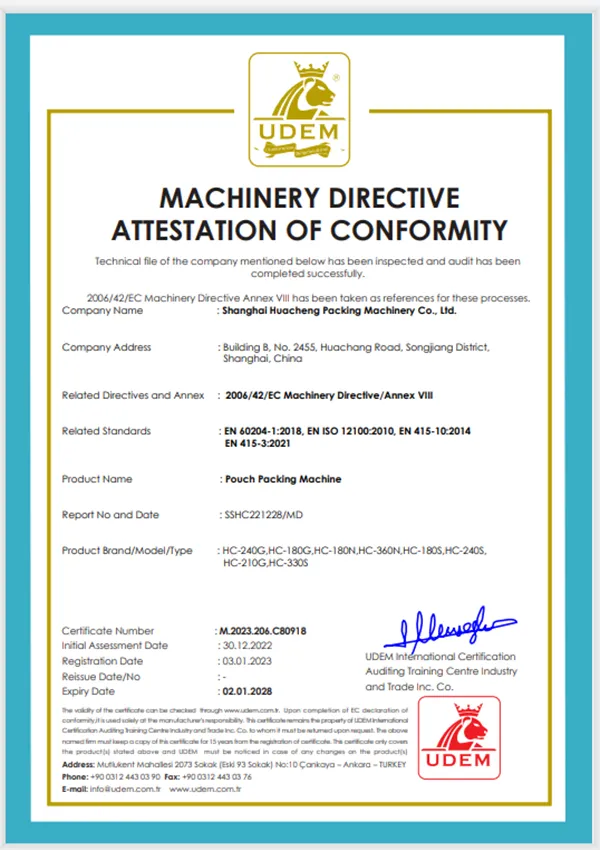 أنشأت شركة Shanghai Huacheng Packing Machinery المعروفة باختصار (Huapack) عام 2015 ويقع مقرها في منطقة Songjiang بشنغهاي. ندمج البحث والتطوير والتصنيع والمبيعات والخدمات الفنية في كيان واحد، مع تركيز واضح ومخصص على آلات تعبئة الأكياس.