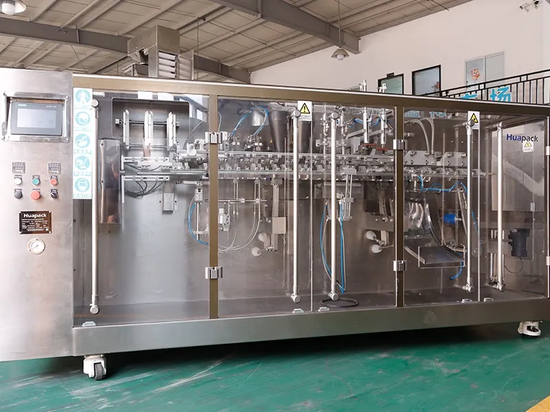 تعد ماكينة التعبئة الآلية الأفقية هذه مناسبة للأكياس الجاهزة القائمة، وتستوعب أحجام تصل إلى 700 مل. تعمل فوهتان في آن واحد، ما يسمح بتعبئة كيسين في وقت واحد، وبالتالي تصل سرعة خط الإنتاج إلى 80 كيس في الدقيقة. يسهم ذلك في زيادة الإنتاج مع الحفاظ على استقرار عملية التعبئة وسهولة إدارتها. تعد آلات تعبئة الأكياس الجاهزة ذات الفوهتين مثالية لأحجام الأكياس المتوسطة والكبيرة، لا سيما في خطوط الإنتاج التي تتطلب إنتاجية عالية مع الحفاظ على جودة التعبئة وشكل الكيس.