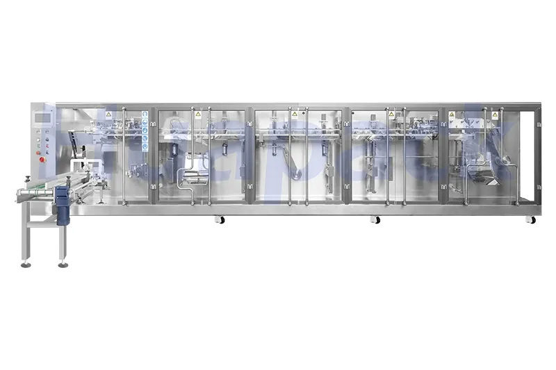 صممت هذه الآلات الأفقية لتعبئة الأكياس الجاهزة لتلبية متطلبات الإنتاج العالي والطلبات الكبيرة، حيث تتعامل مع أحجام تعبئة تصل إلى 1500 مل، وتعمل مع تقنية الأكياس المتداخلة، حيث يتم وضع كيس داخلي منفصل بدقة داخل الكيس الخارجي الرئيسي لتكوين عبوة مزدوجة الطبقات. تتميز هذه الماكينات ببنية مناسبة لتطبيقات خاصة، مثل تعبئة مكونين متفاعلين بشكل منفصل في الصناعات الكيميائية بحيث لا يختلطان إلا عند الاستخدام. مزودة بنظام تحكم ذكي يدير عملية تعبئة الكيسين الداخلي والخارجي بشكل مستقل، مما يسمح بضبط ومراقبة مختلف المنتجات وتسلسلات التعبئة بدقة عالية وتشغيل مستقر.